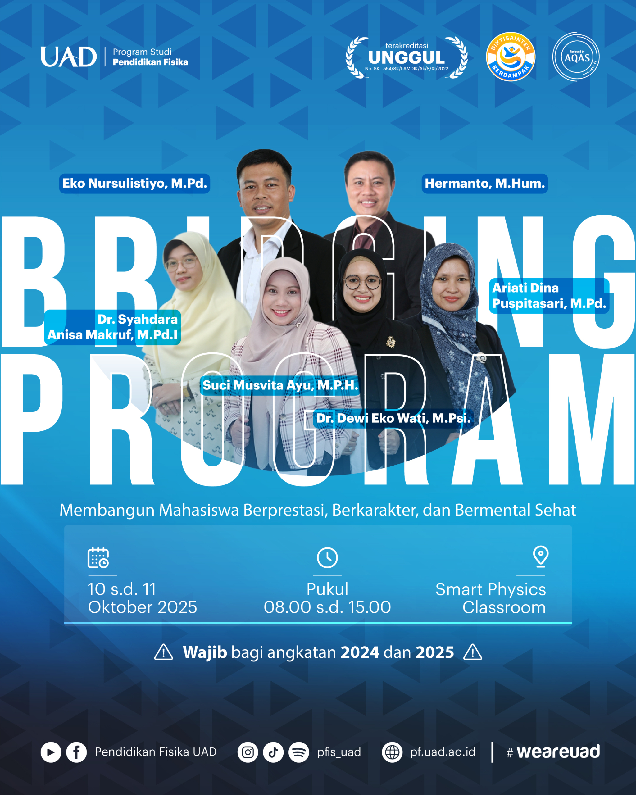Setidaknya ada enam alasan kenapa kamu memilih Program Studi Pendidikan Fisika UAD sebagai tempat melanjutkan pendidikan untuk mengembangkan diri dan merajut masa depan.