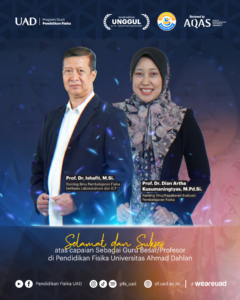 Yogyakarta — Program Studi Pendidikan Fisika Universitas Ahmad Dahlan (UAD) kembali mencatatkan capaian akademik membanggakan. Dua dosen Pendidikan Fisika resmi menerima Surat Keputusan (SK) Guru Besar, yakni Prof. Dr. Ishafit, M.Si. dan Prof. Dr. Dian Artha Kusumaningtyas, M.Pd.Si.